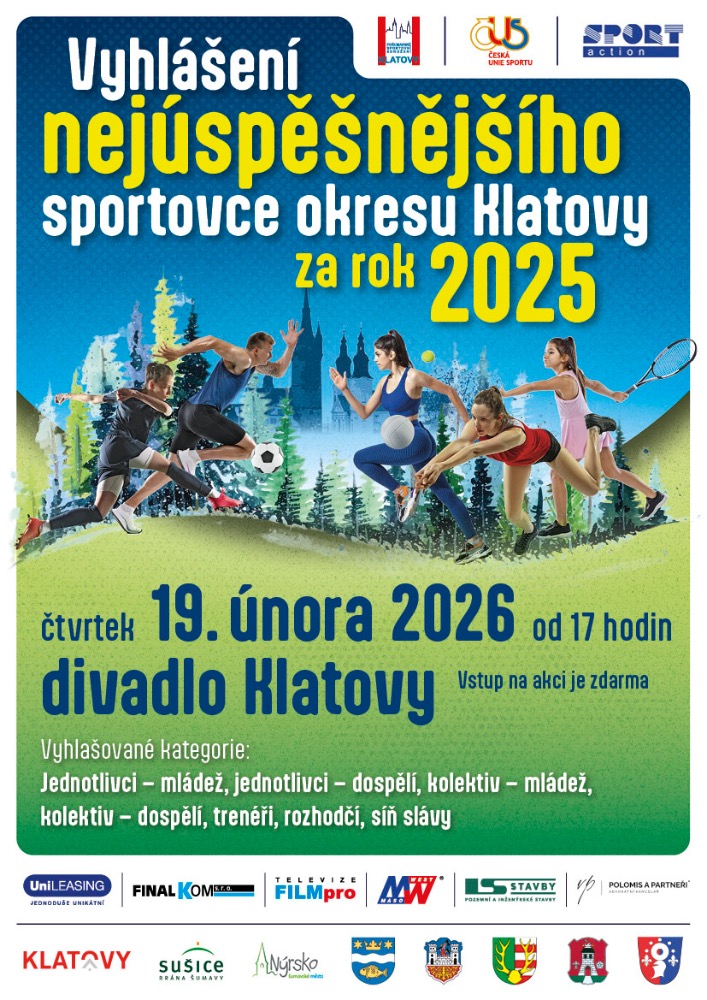 19. Klatovy - Vyhlášení sportovce okresu Klatovy, 17:00 Divadlo J.K.Tyla - info